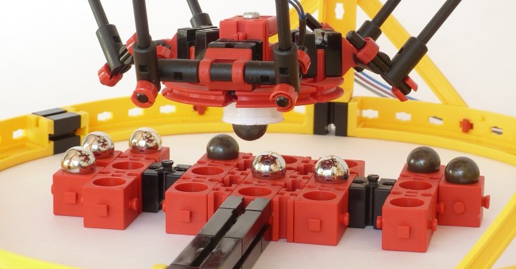 Delta-Roboter sind ideal für schnelle Sortieraufgaben und faszinieren den Betrachter durch ihre hohe Geschwindigkeit, ihren ungewöhnlichen und schlanken Aufbau und ihre eleganten Bewegungen. Wir stellen einen Delta-Roboter aus fischertechnik-Bauteilen vor, der vielseitig eingesetzt werden kann. Seine Geschwindigkeit stellt unser Delta beispielhaft beim Einsiedlerspiel »Solitaire« unter Beweis, er ertastet menschliche Spielzüge beim »TicTac-Toe«, kann als Computermaus eingesetzt werden, erkennt die Position von Werkstücken und sortiert sie nach ihrer Farbe.